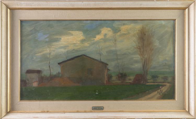 Nino Vitali (Bologna, XX secolo). Campagna bolognese con casolare.