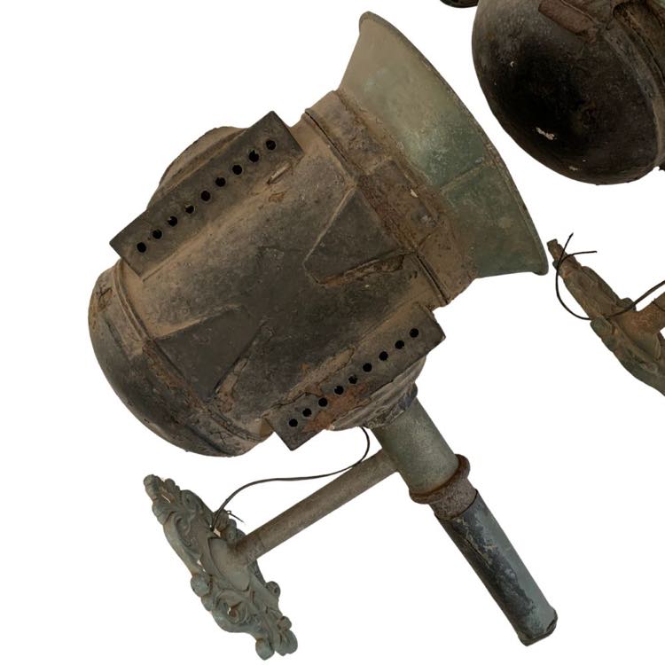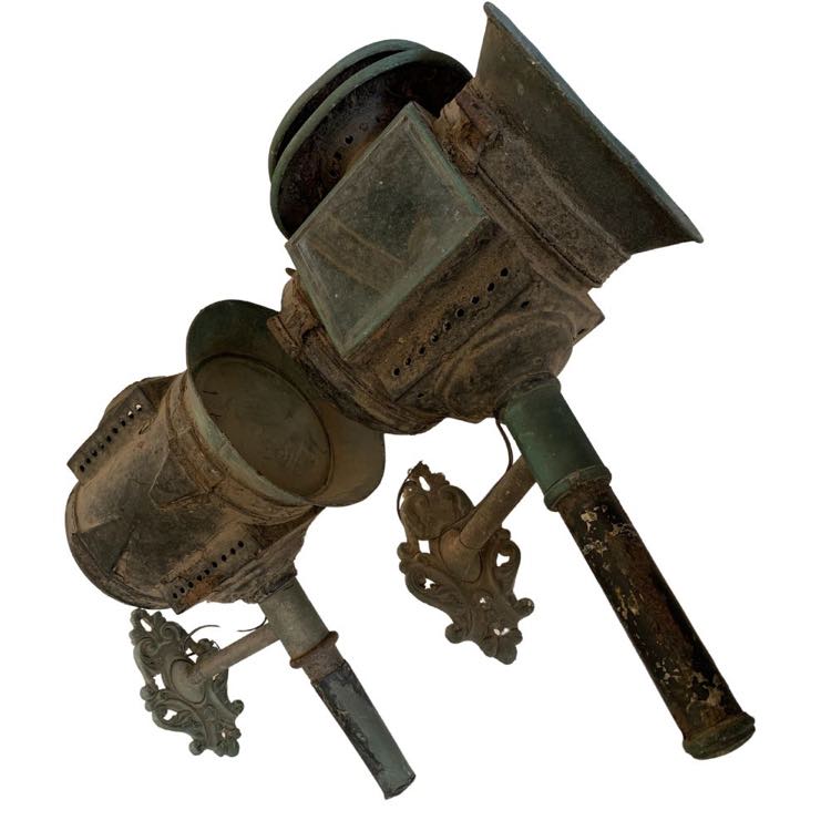 Coppia di fanali da carrozza in ferro battuto, circa 1900.