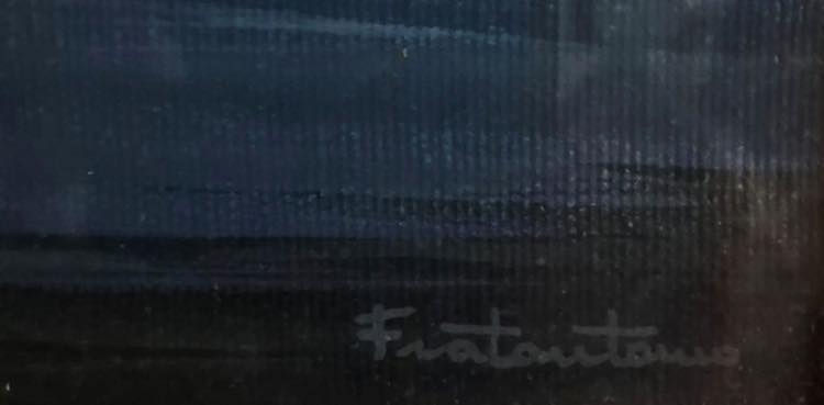 Olio su tela. Firmato in basso a destra "Fratantonio". Titolato, datato e firmato sul retro Laguna 1981 Fratantonio.