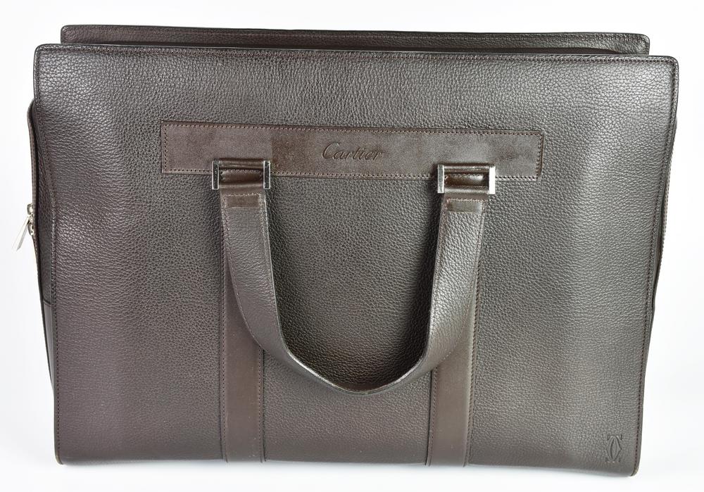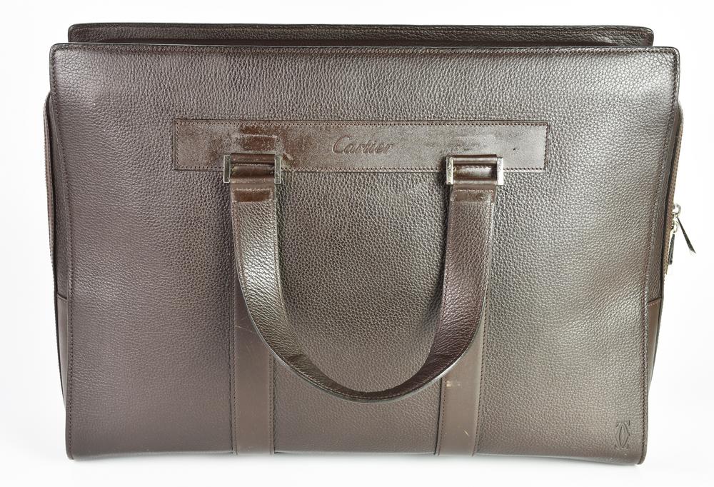 Cartier PASHA BRIEFCASE DESCRIPTION: Two-handle dark brown leather briefcase....