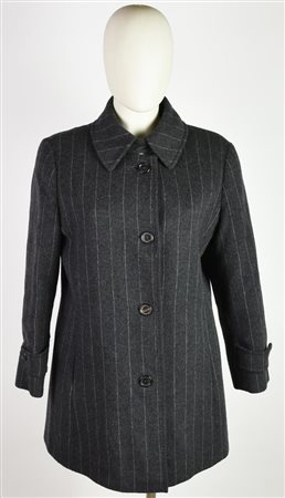 Burberry PINSTRIPE COAT DESCRIPTION: Grey pinstriped wool blend coat....