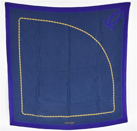 Foulard probabilmente in seta della linea Must de Cartier. Cm 77,50x81,00. Manca etichetta di composizione. Perfettamente conservato.