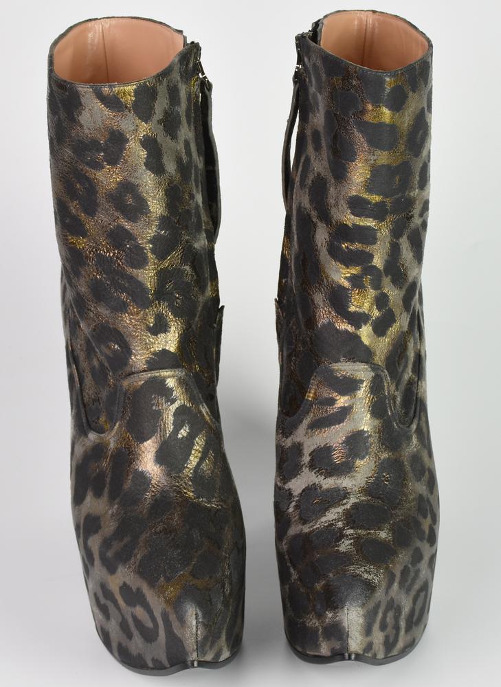 Iconic platform ankle boots in animal print with a side zipper. Leather sole. Chunky heel measuring 14,50 cm and platform of 5 cm. Comes with original box and dust bag. Size 37 IT. Made in Italy. Well preserved.