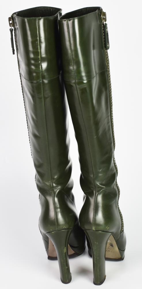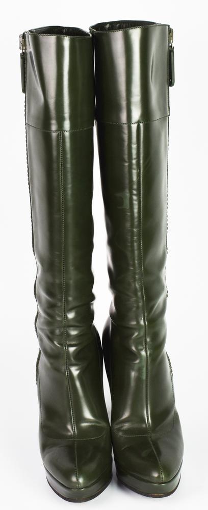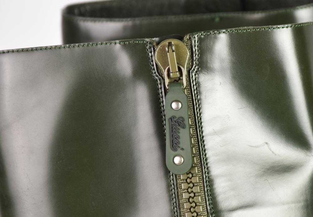 Gucci BOOTS DESCRIPTION: Dark green patent leather knee-high boots with side...