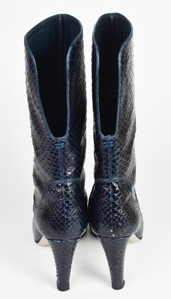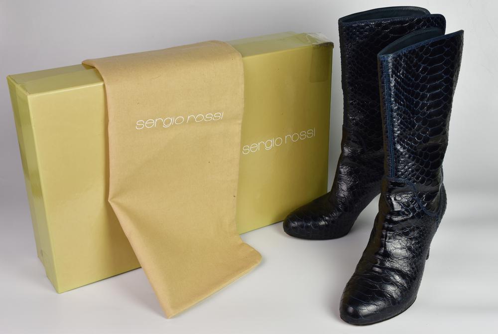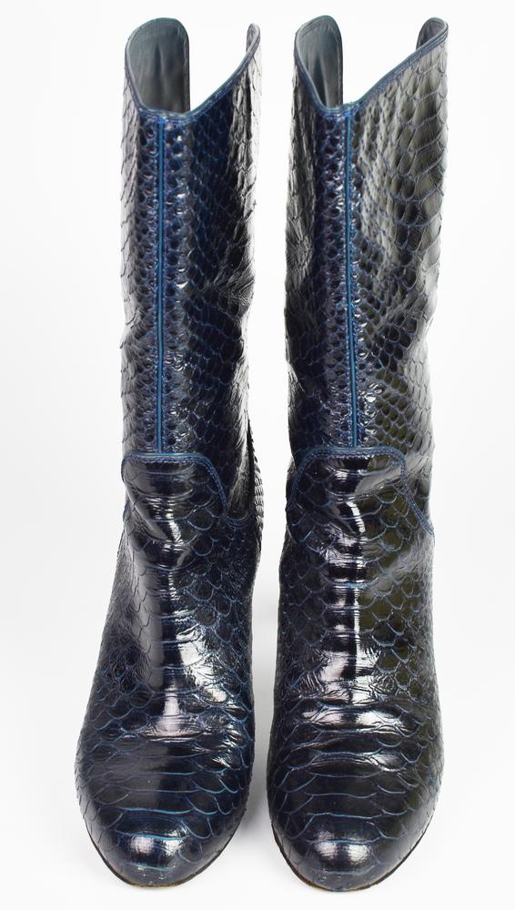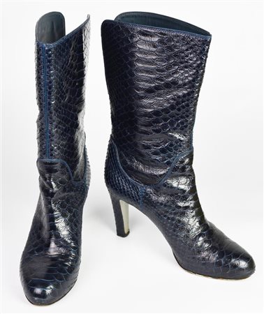 Stivali in pelle stampata con interni in pelle. Tacco 9 cm. Taglia 39. Presentati con scatola e dustbag originali. Prodotti in Italia. Segni d’uso solo sulla suola. Ben conservati.