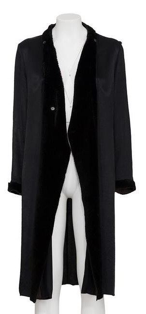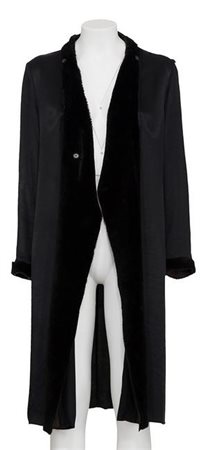 Rare reproduction of a lining of a man's overcoat from the 60's from the Fall Winter 1995 collection. Fake fur details. Inner pocket at fur collar. 100x100 viscose. Fake fur 66x100 acrylic, 34x100 cotton. Size is M. Well Preserved.