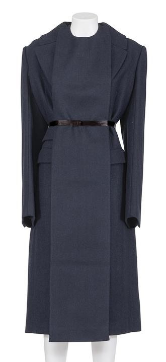 Iconic and rare raw cut wool coat from the Fall Winter 2002 collection. Plastron with satin belt. 100x100 wool. Size is IT 42. Excellent Conditions.