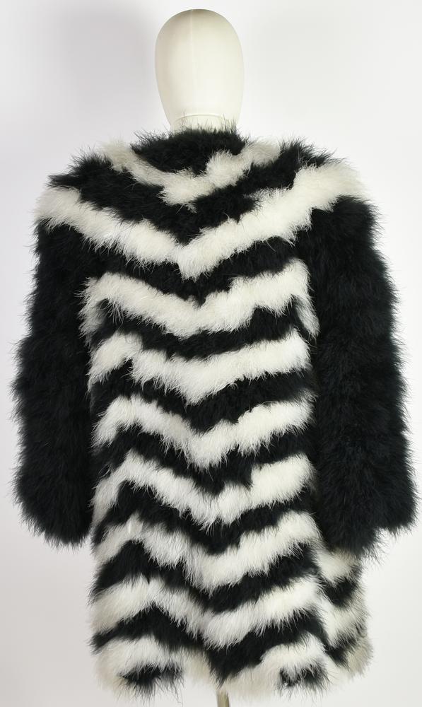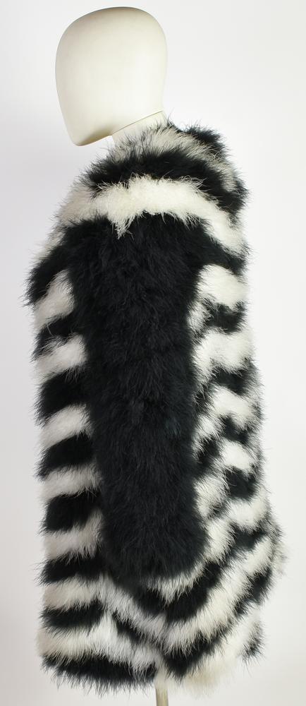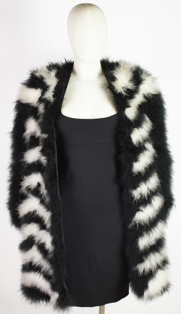 Pelliccia di marabu' bianca e nera. Manca etichetta di taglia e composizione. Lunghezza 84 cm. Probabilmente manifattura francese. Anni '80. Taglia unica. Ben conservata.