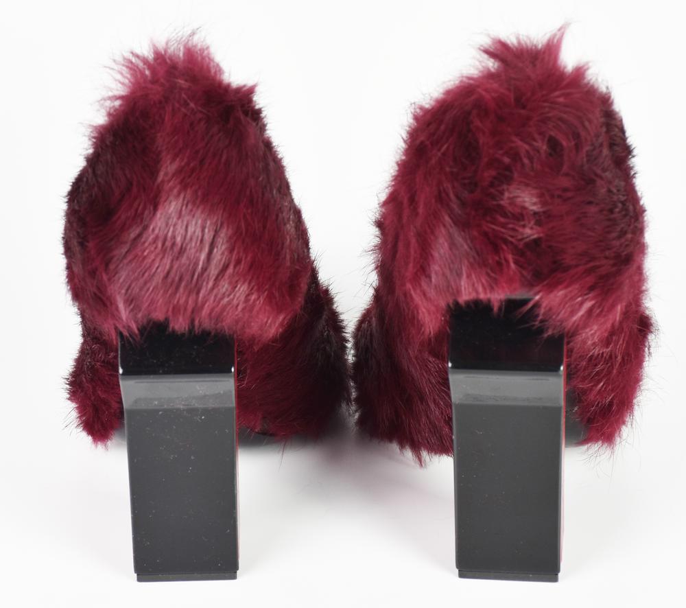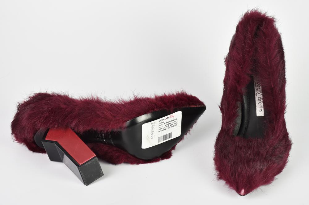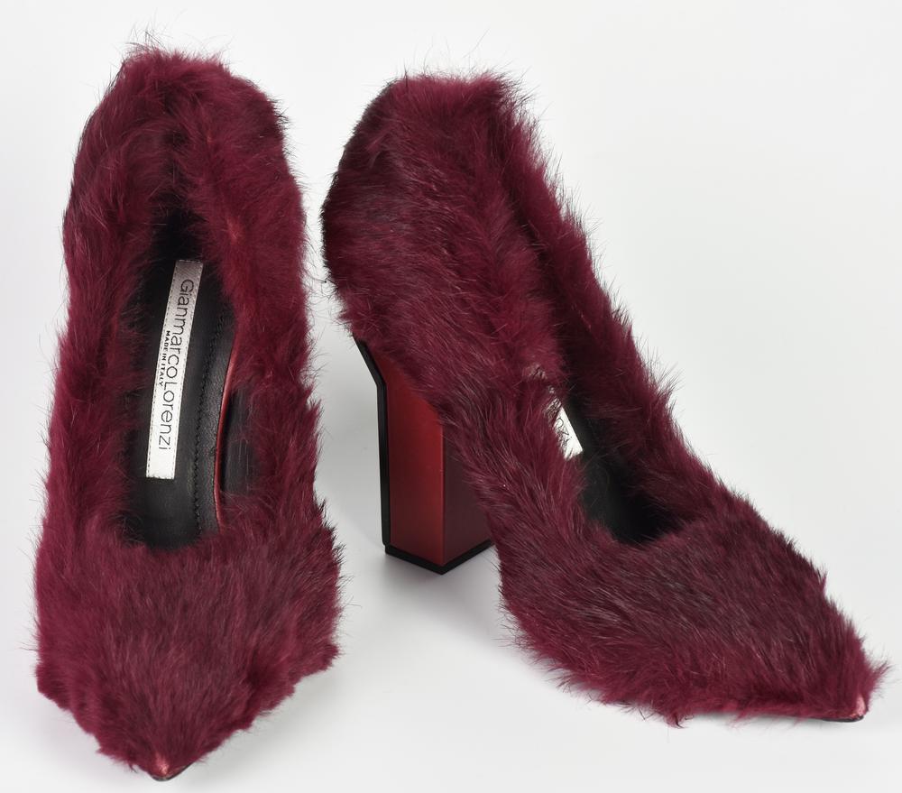 Gianmarco Lorenzi FUR PUMP DESCRIPTION: Bordeaux genuine lapin fur-covered...
