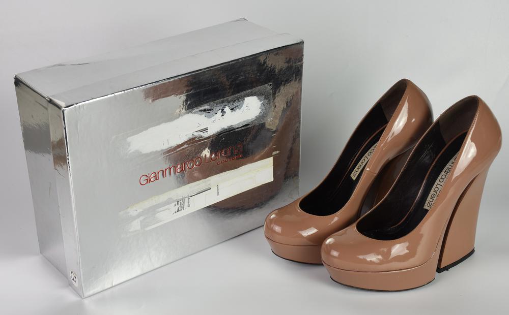 Gianmarco Lorenzi PINK PUMP DESCRIPTION: Antique pink patent leather platform...