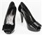 Open toe black patent leather pumps with a bow at the tip. Heels 11 cm. Size 37,5. Made in Italy. Slight signs of wear. Well preserved.