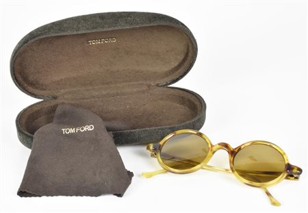 Occhiali da sole con montatura tonda in plastica. Presentati con custodia e panno loggato Tom Ford non pertinenti. Ben conservati.