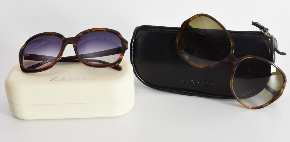 SUNGLASSES DESCRIPTION: Two pairs of sunglasses, Zara and Oliver Peoples....