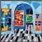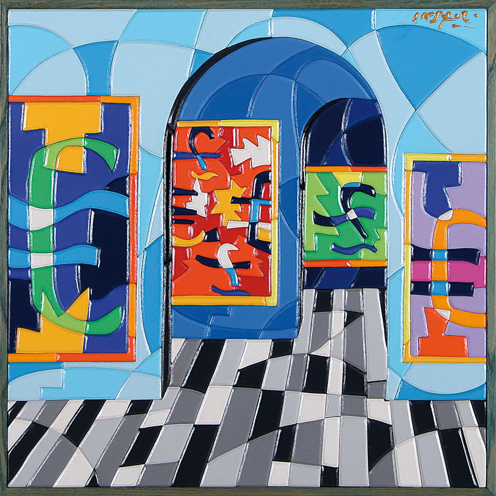 acrilici su legno intarsiato cm. 40x40, firma in alto a destra, titolo, firma ed etichetta dell'artista al retro, dichiarazione d'autenticità dell'artista su foto.