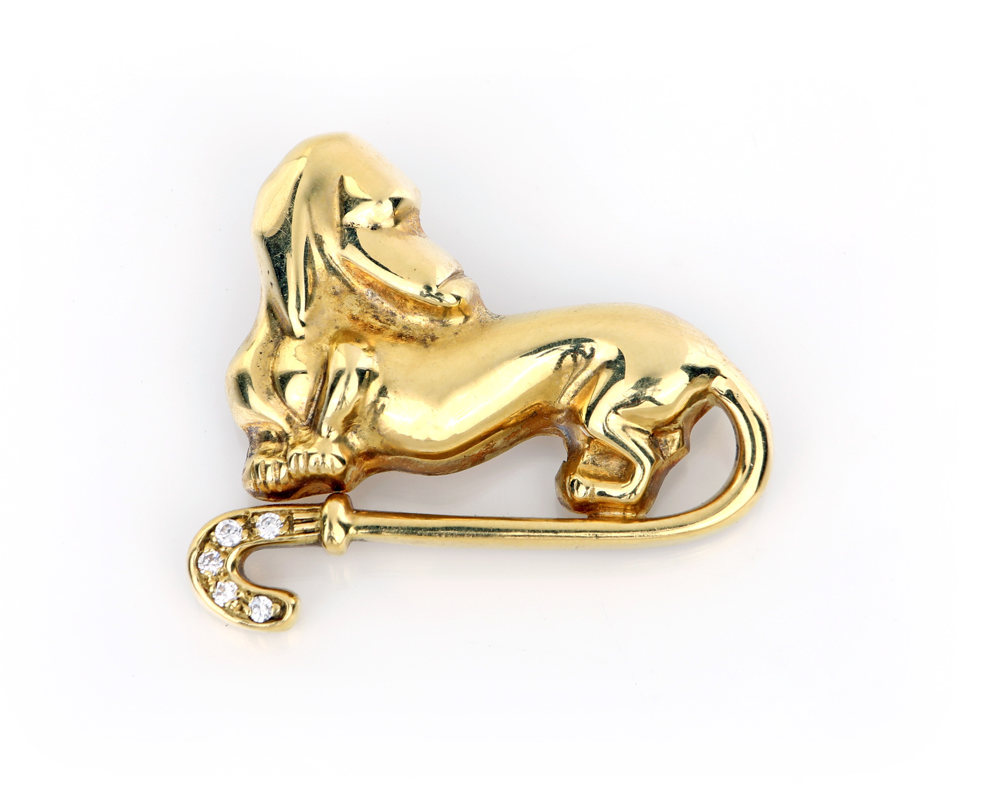 Spilla cagnolino in oro e brillanti Oro giallo 750/000. Peso complessivo gr 8,5 mm 3,5x3