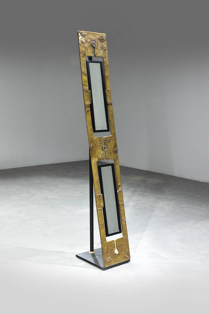 Struttura in metallo e vetro specchiato.