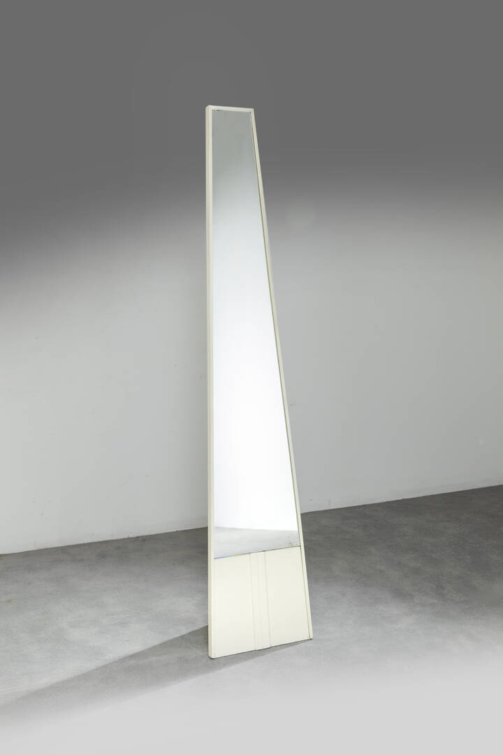Struttura in legno laccato e vetro specchiato.