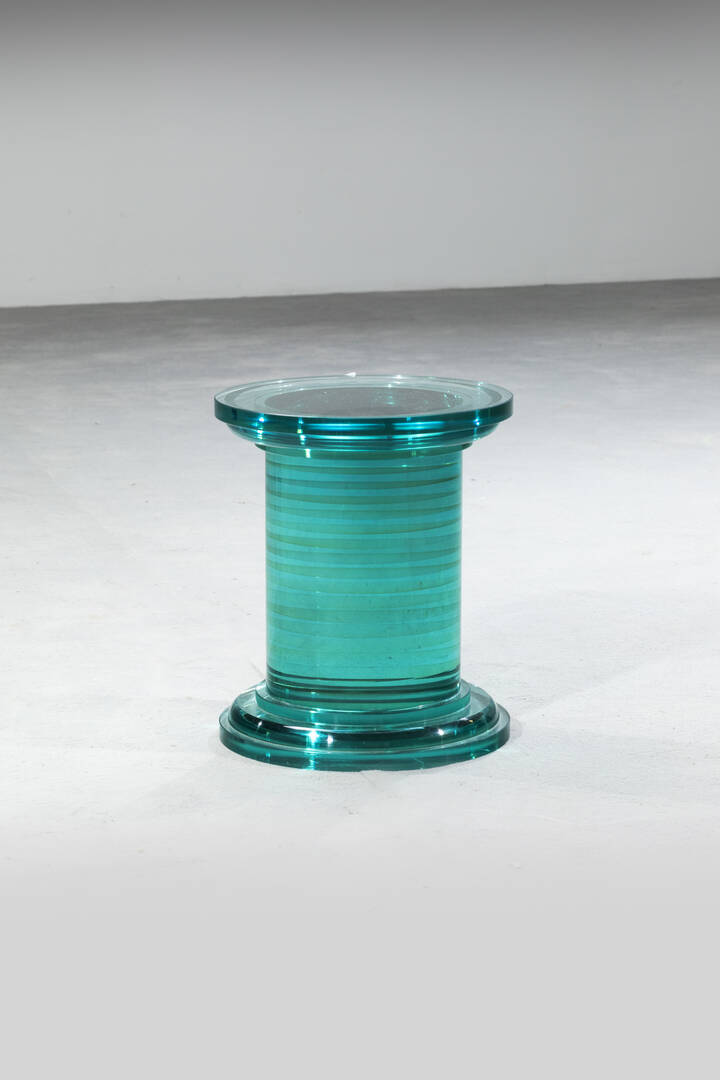 Tavolino in vetro verde Nilo di forte spessore.