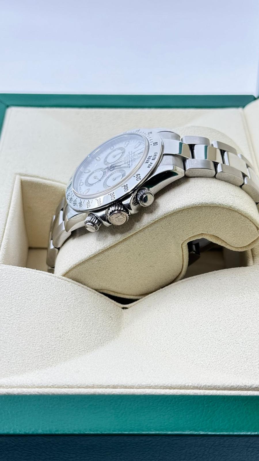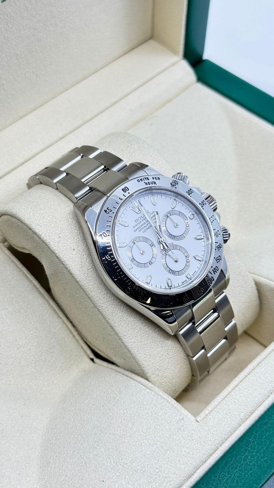 Marca Rolex Modello (Orologio) Daytona Numero di referenza 116520 Carica Automatico Materiale della cassa Acciaio Materiale cinturino Acciaio Anno di produzione 2005 Condizione Usato (Ottimo) documenti originali, no box Materiale della cassa Acciaio Diametro 40 mm Impermeabile 10 ATM Materiale lunetta Acciaio Vetro Vetro zaffiro Numeri sul quadrante Senza numeri Cinturino Materiale cinturino Acciaio Colore cinturino Acciaio Chiusura Déployante Materiale chiusura Acciaio