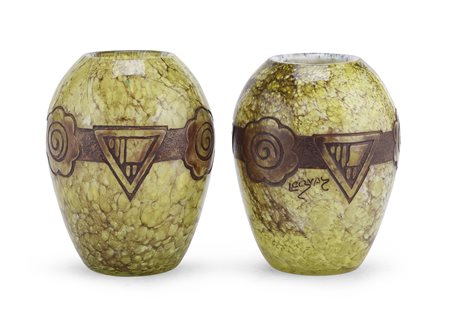 COPPIA DI VASI IN VETRO, LEGRAS ANNI '20