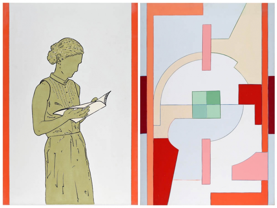 Renato Mambor 1936 " Leggere 1_2 ", 2008 Acrilico su tela, mc. 120 x 160 (dittico) Firmato e datato sul retro Autentica dell'artista su fotografia BIBLIOGRAFIA: " Renato Mambor, La superficie e le storie infinite ", Edizioni Christian Maretti, p. 25, 2008 Prov. Collezione Privata