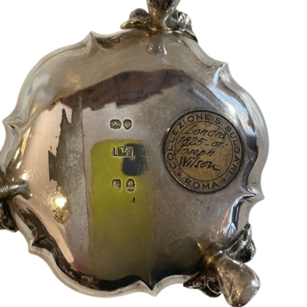 Gruppo di sei saliere, Londra, 1825. Argentiere Joseph Wilson. Interno in vermeil. Sotto la base di ogni pezzo etichetta Collezione S. Bulgari Roma. Peso complessivi gr. 852.