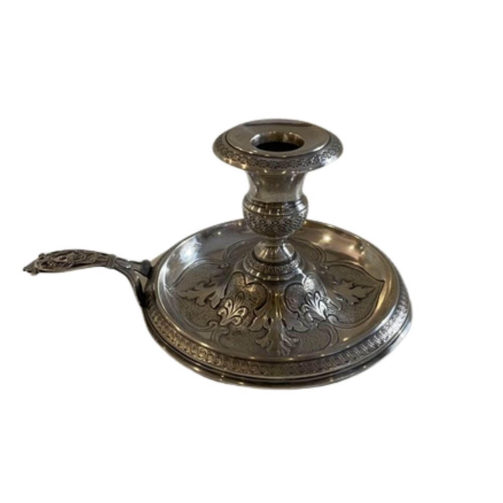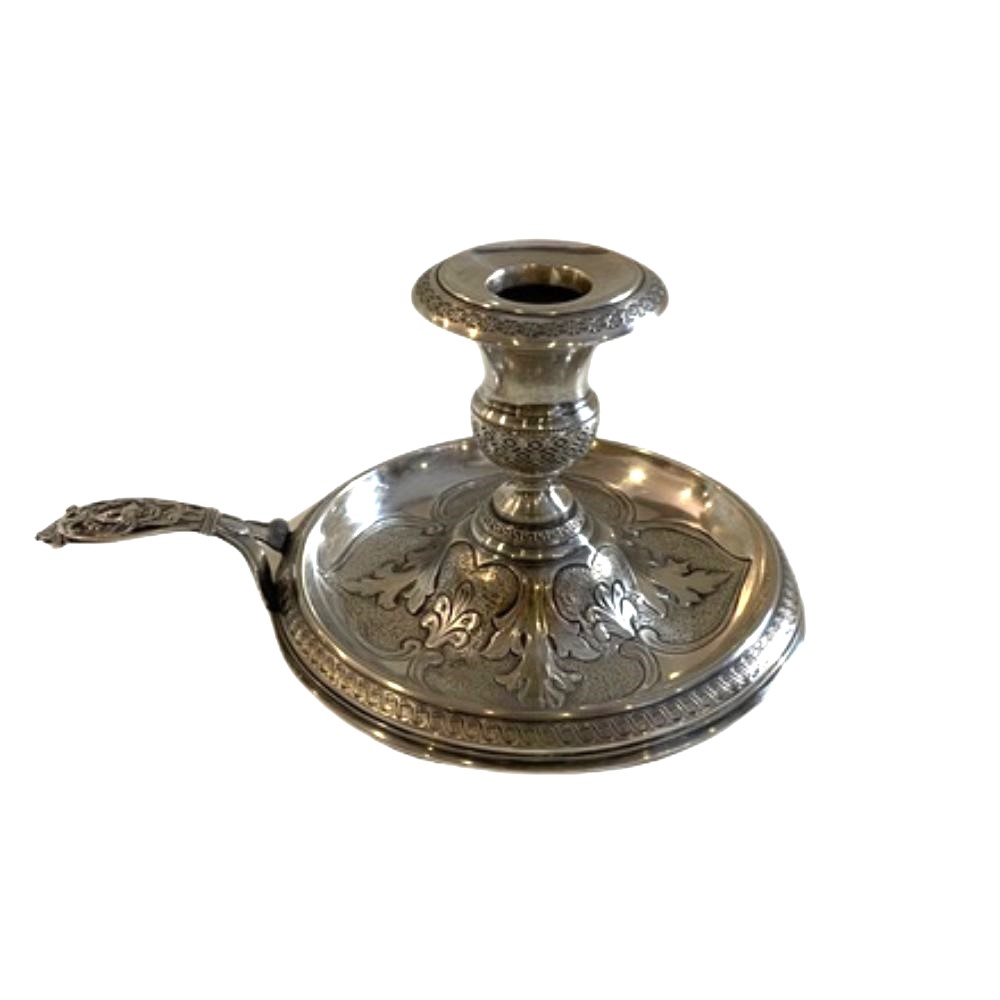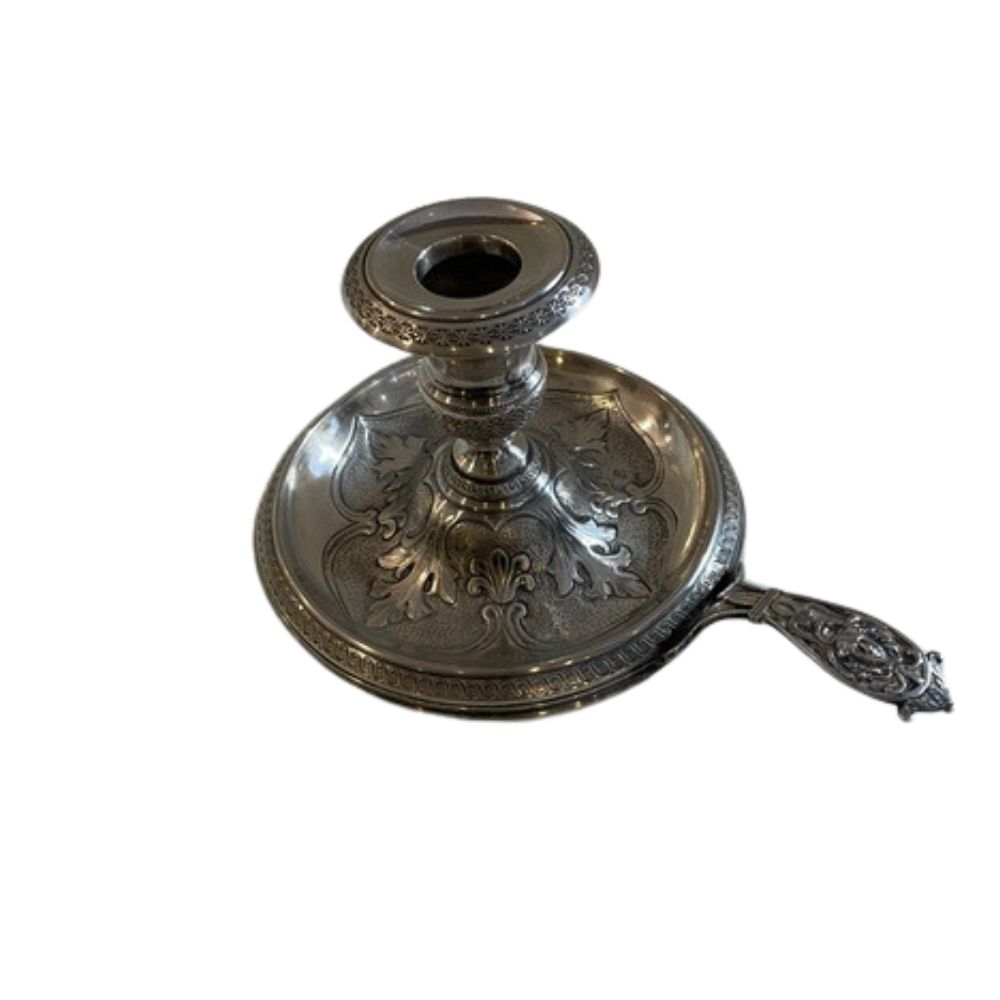 Bugia in argento, Regno Lombardo Veneto, XIX secolo. Punzone incudine per piccola argenteria. Cm. 9x20. Gr. 170.