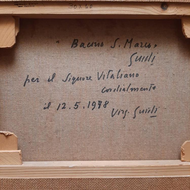 Olio su tela. Al verso titolato, datato e firmato. Al verso presente dedica. Autentica e archiviazione al numero repertorio 91/05/N Archivio Storico Artisti Veneti.