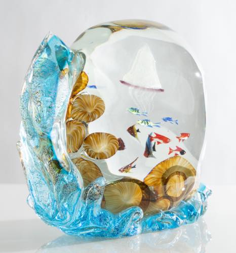 Massimiliano Schiavon. Scultura in vetro soffiato della serie Aquarium, 2000 circa. Firma incisa del produttore. Prod. Massimiliano Schiavon, Murano, 2000 circa. Accompagnata da certificato di originalità. Cm. 31x34x10.