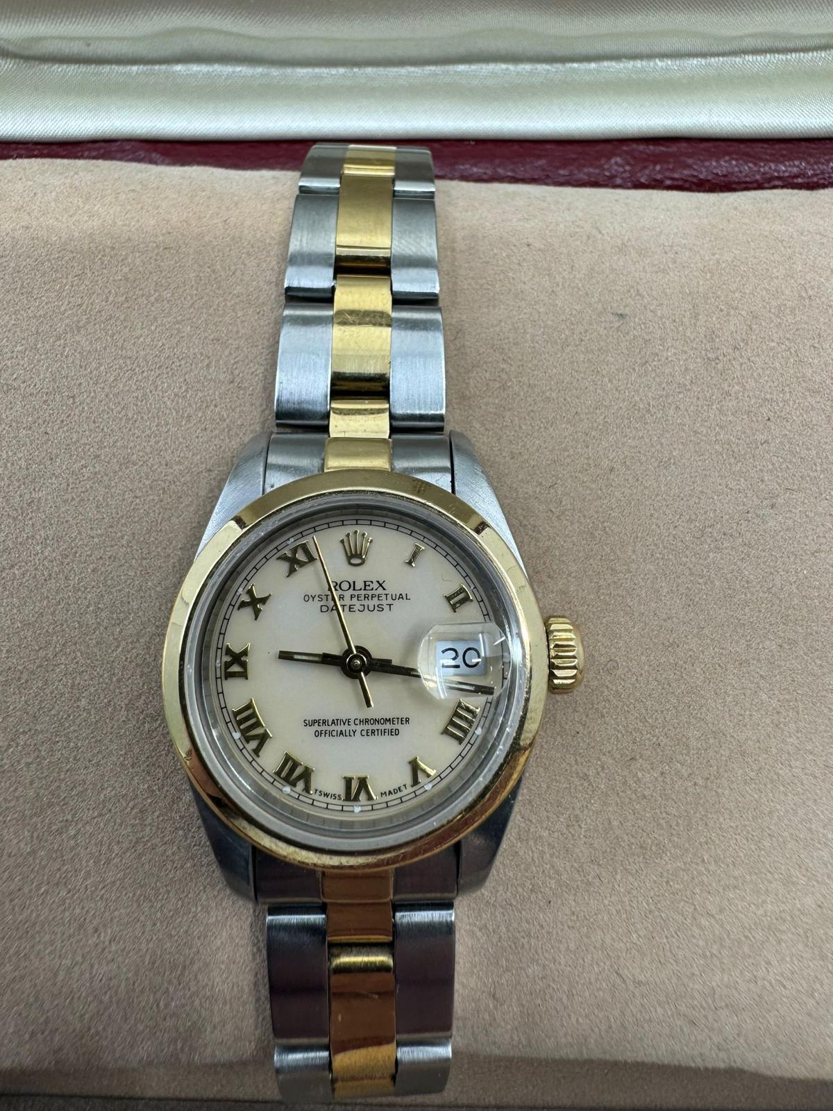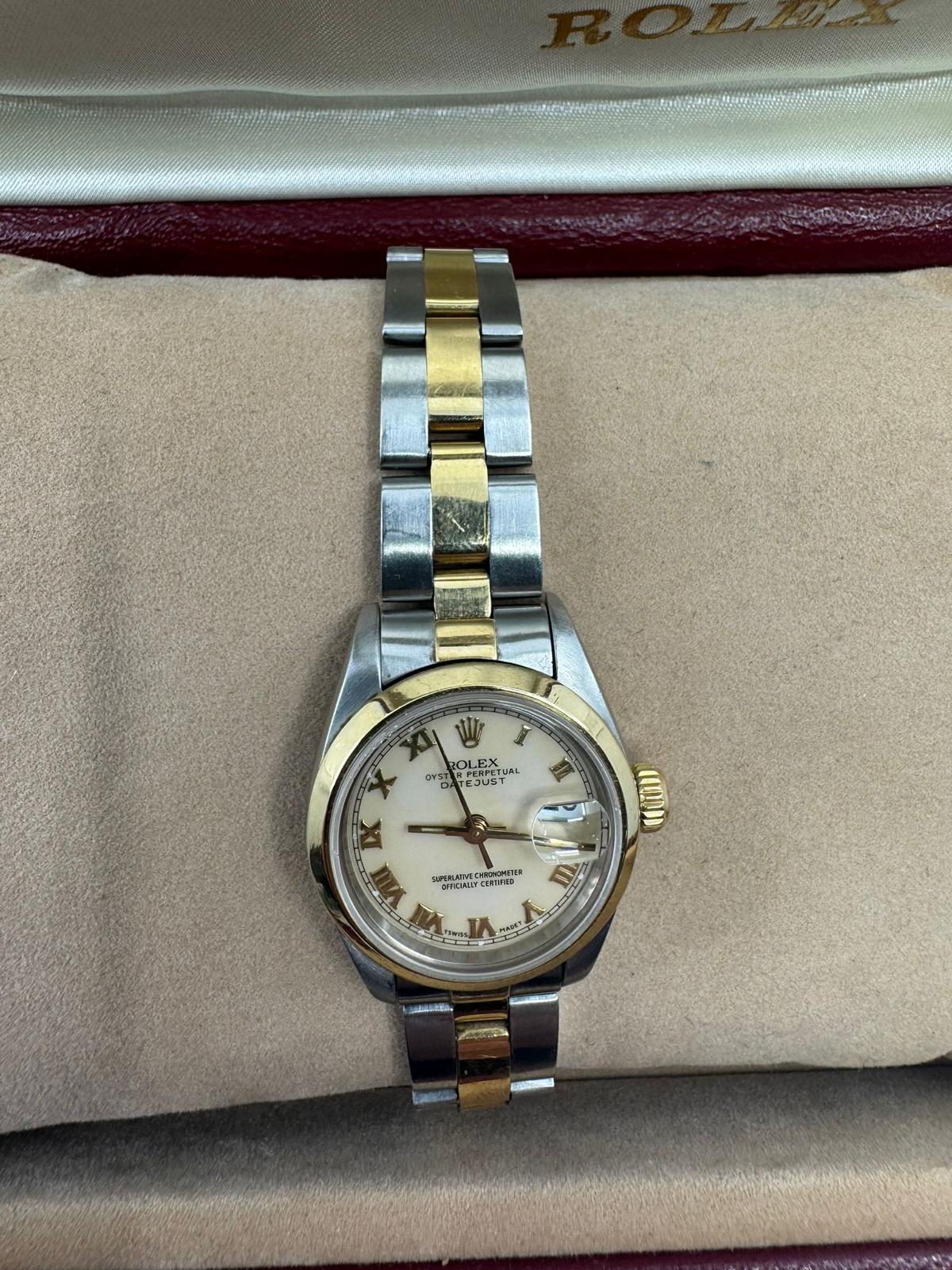 Marca Rolex Modello (Orologio) Lady-Datejust Numero di referenza 69163 Carica Automatico Materiale della cassa Oro/Acciaio Materiale cinturino Oro/acciaio Anno di produzione 1990 Condizione Ottimo (di seconda mano, segni di usura assenti o appena visibili) Corredo Full set, scatola originale, documenti originali Calibro Carica Automatico Materiale della cassa Oro/Acciaio Diametro 26 mm Impermeabile 10 ATM Materiale lunetta Oro giallo Vetro Vetro zaffiro Quadrante Bianco Cinturino Materiale cinturino Oro/acciaio Colore cinturino Oro/acciaio Chiusura Déployante Materiale chiusura Acciaio Funzioni Data