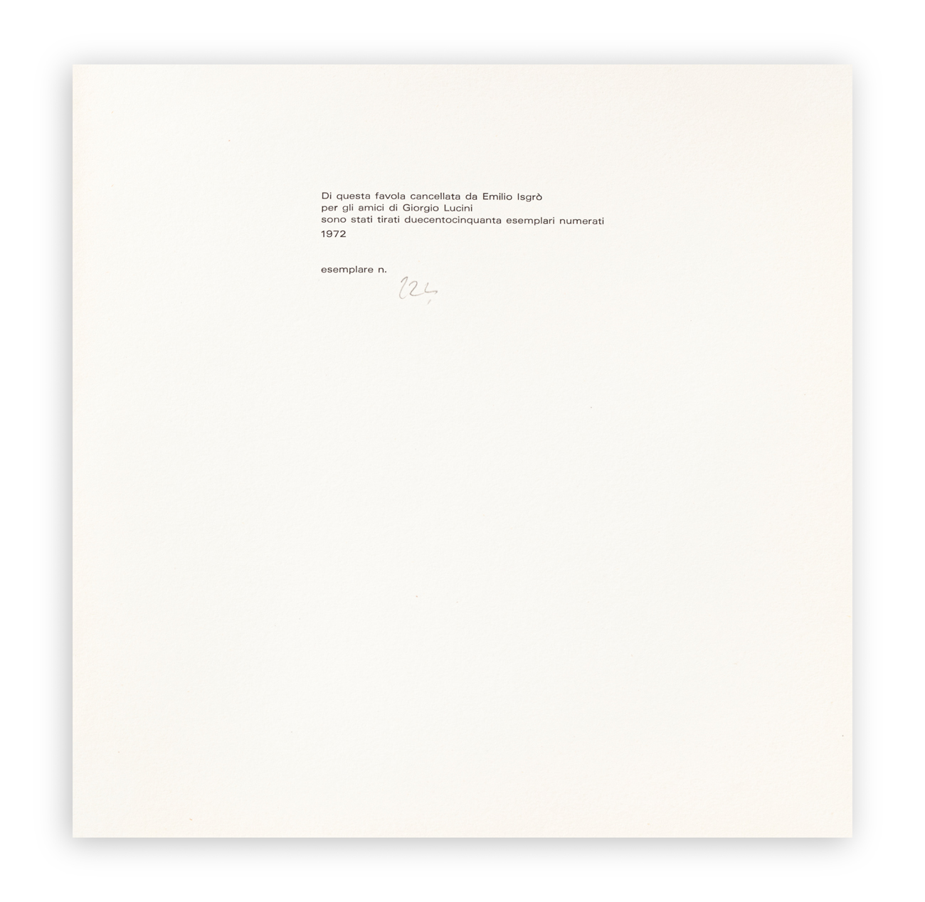 Numerazione a matita sul colophon di presentazione