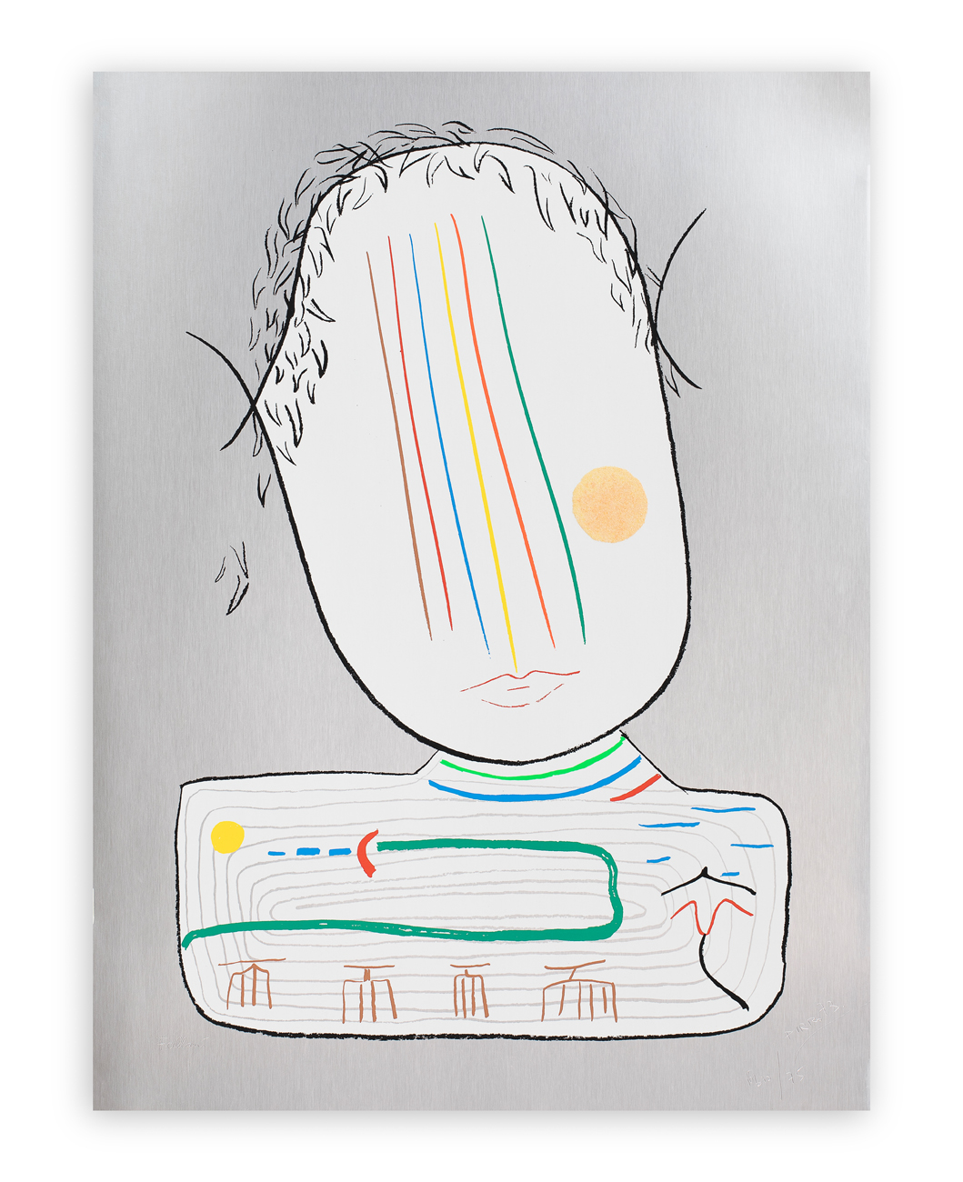 Cartella contenente 7 serigrafie (5 su carta, 2 su foglio di alluminio), ciascuna recante firma, datazione e numerazione (Esemplari 16/75) a matita al fronte