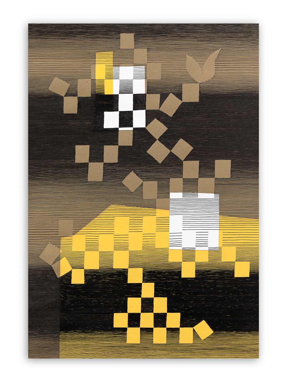Inchiostro, pennarello e collage di cartoncini su cartoncino