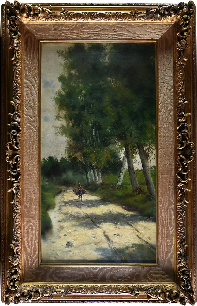 Stanislas Lepine COPPIA DI VEDUTE CON STRADA DI CAMPAGNA, misure leggermente...