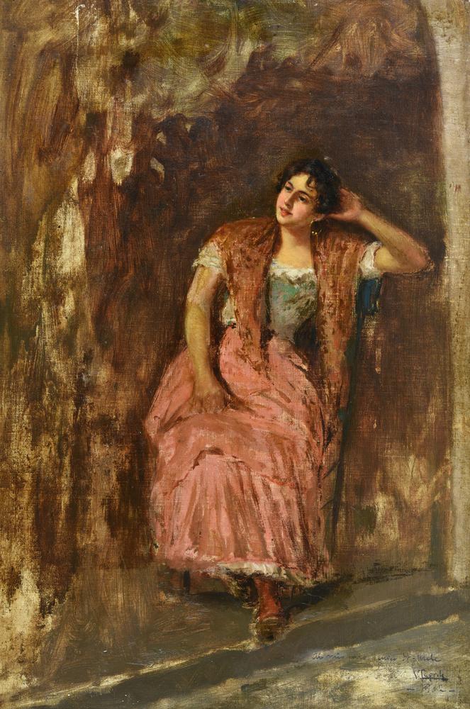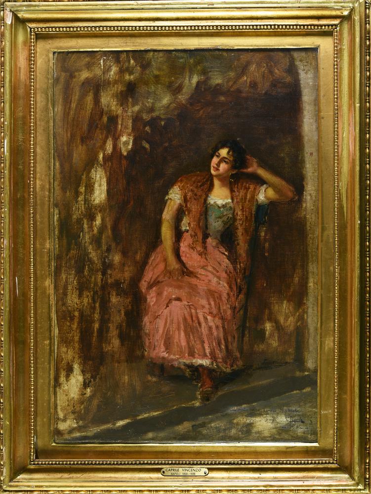 Vincenzo Caprile POPOLANA olio su tela, cm 50,1x34,2 firma, data e dedica ad...