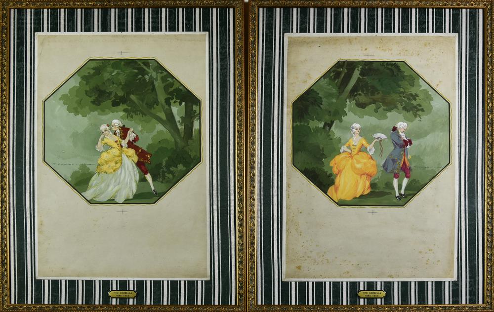 Corbella Tito (1885-1966) - COPPIA DI BOZZETTI PER CARTOLINE, 1920 acquerello...