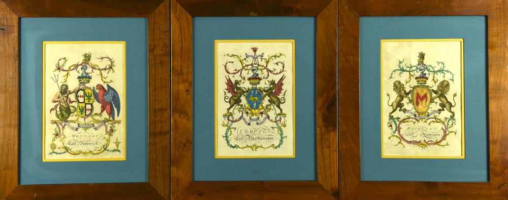 Scuola del XVIII secolo STEMMI ARALDICI DI FAMIGLIE INGLESI stampe a colori...
