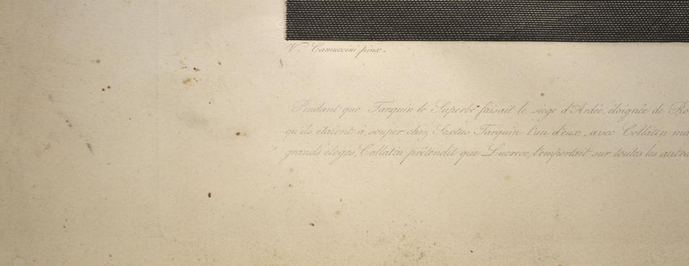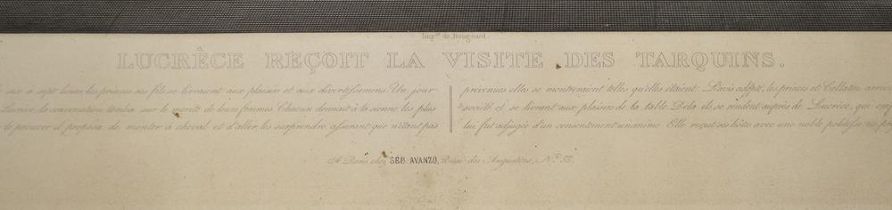 Scuola del XIX secolo LUCREZIA RICEVE LA VISITA DEI TARQUINI litografia, cm...