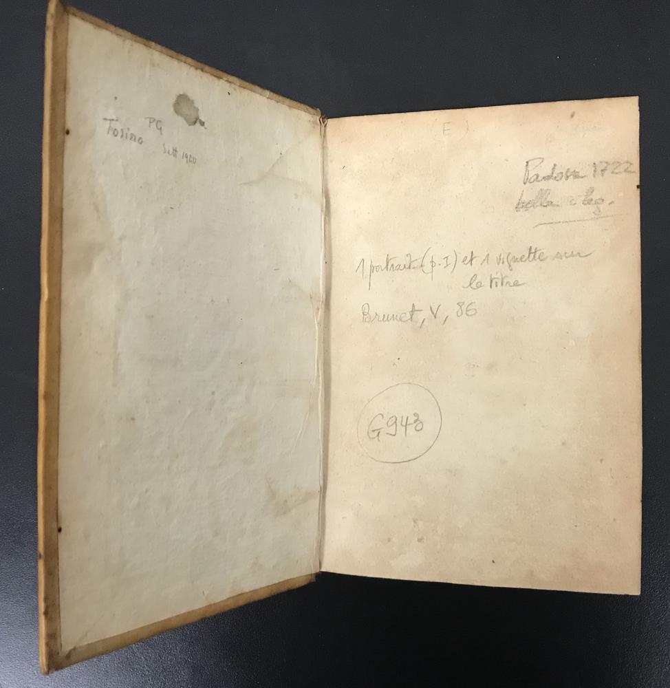In 8° pagine [12], XLIIII, 450, [2 catalogo]. Legatura in piena pelle di maiale coeva con piatti istoriati. Ottimo esemplare della celebre tipografia padovana Volpi-Cominiana.