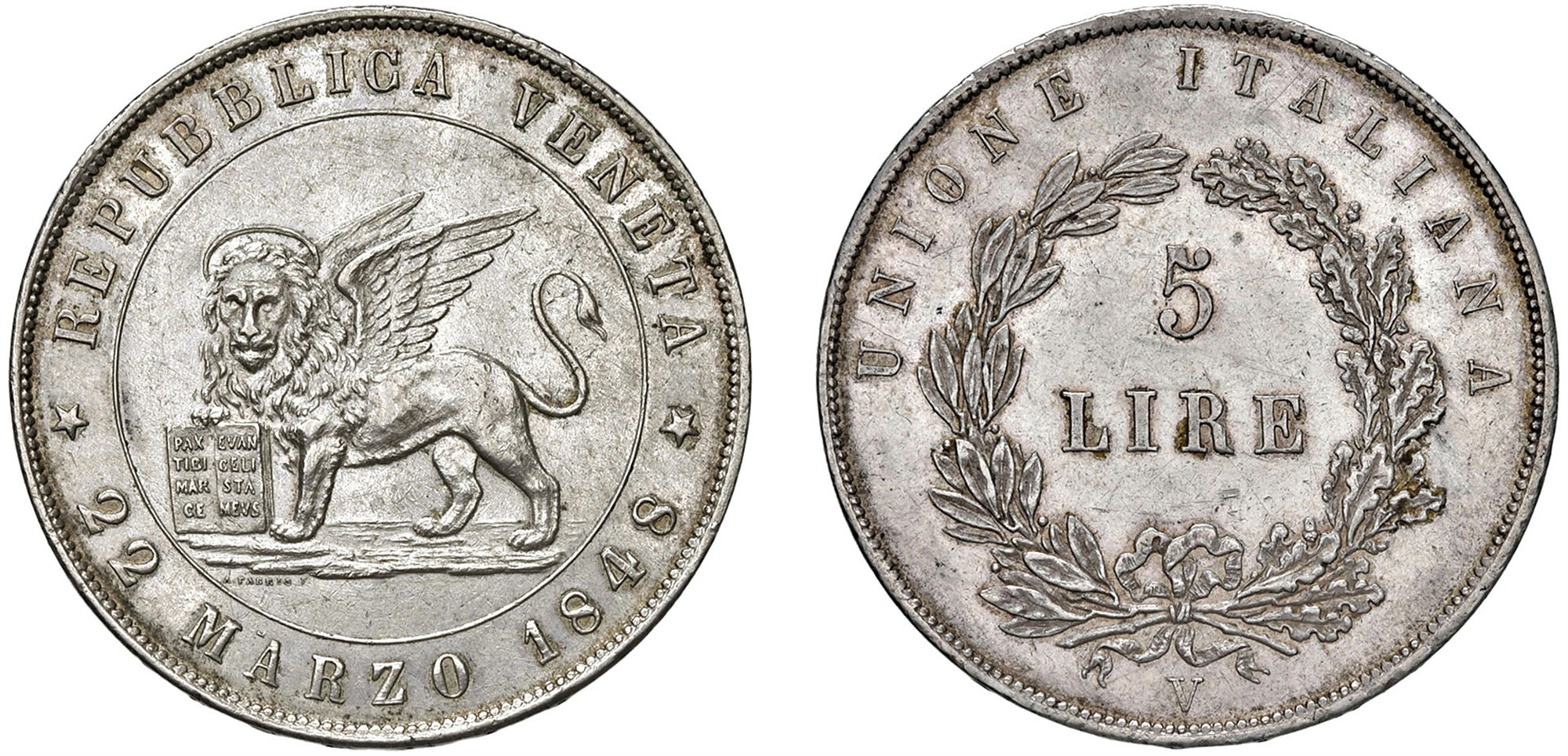 Lotto 53 | VENEZIA - GOVERNO PROVVISORIO DI VENEZIA (1848-1849) - 5 lire 1848