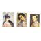 Lotto di tre piccoli dipinti olio su tavola, periodo XX secolo raffiguranti ritratti di donna.