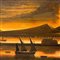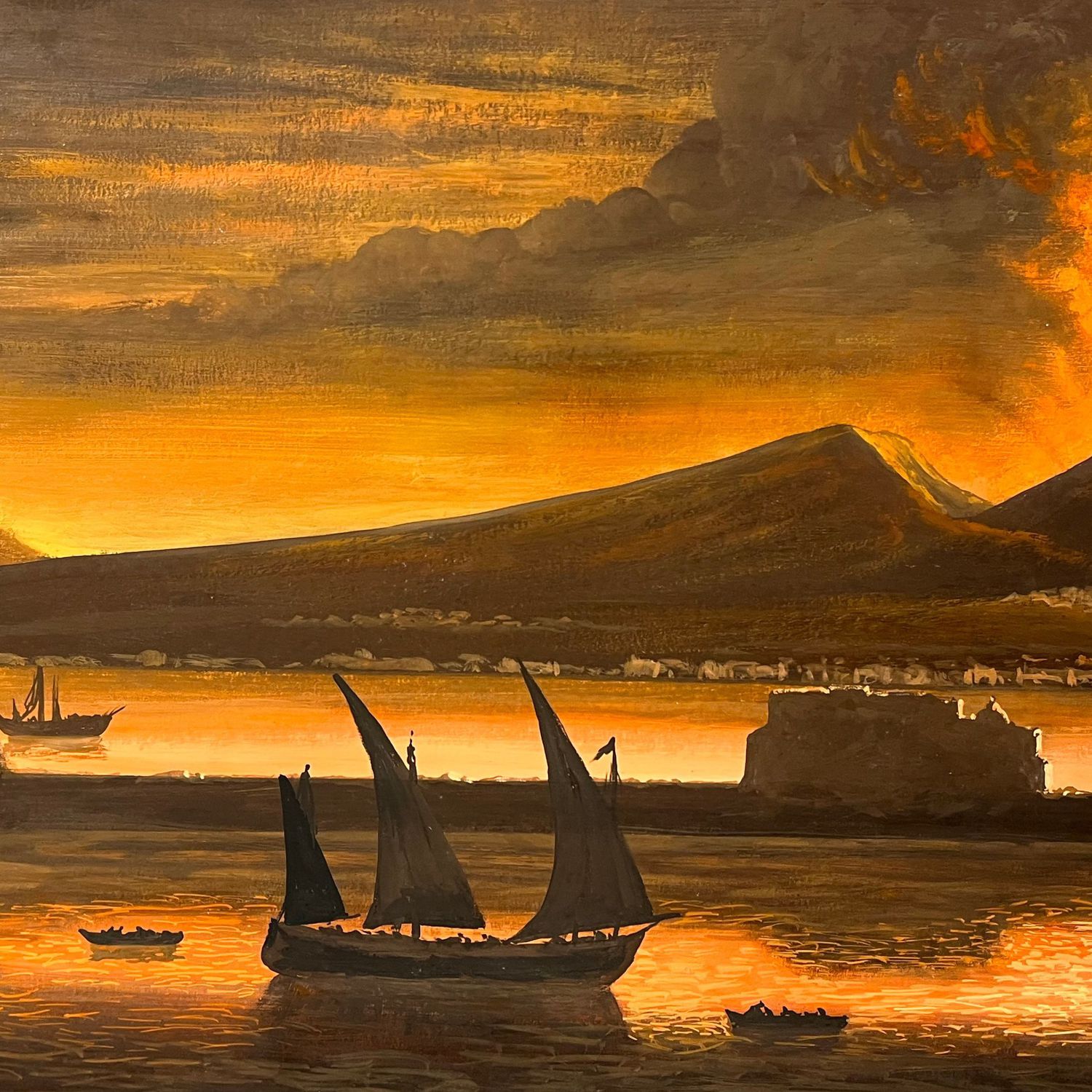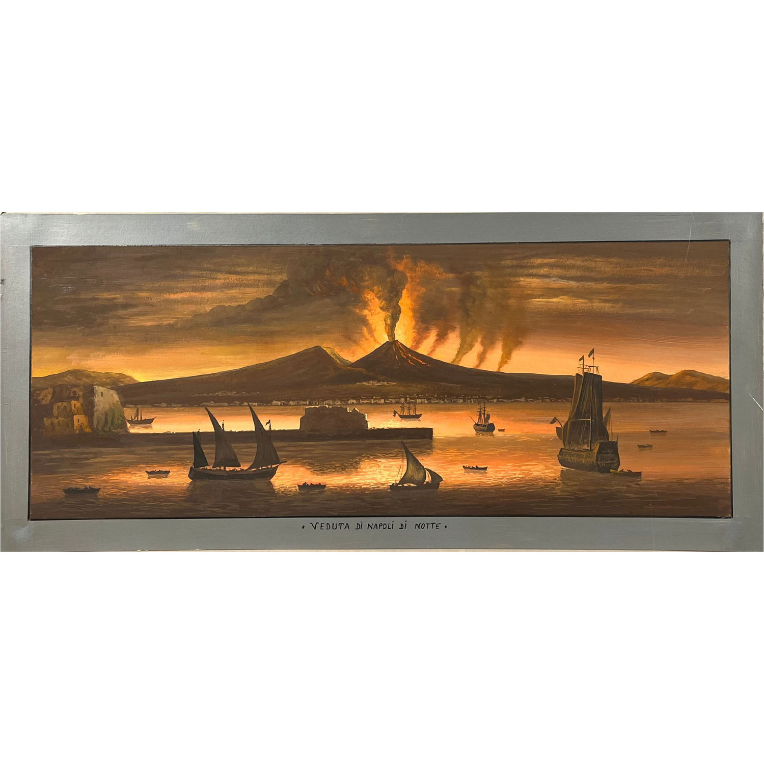 Dipinto guazzo (tempera su carta), periodo XX secolo raffigurante Eruzione del Vesuvio in scena notturna.