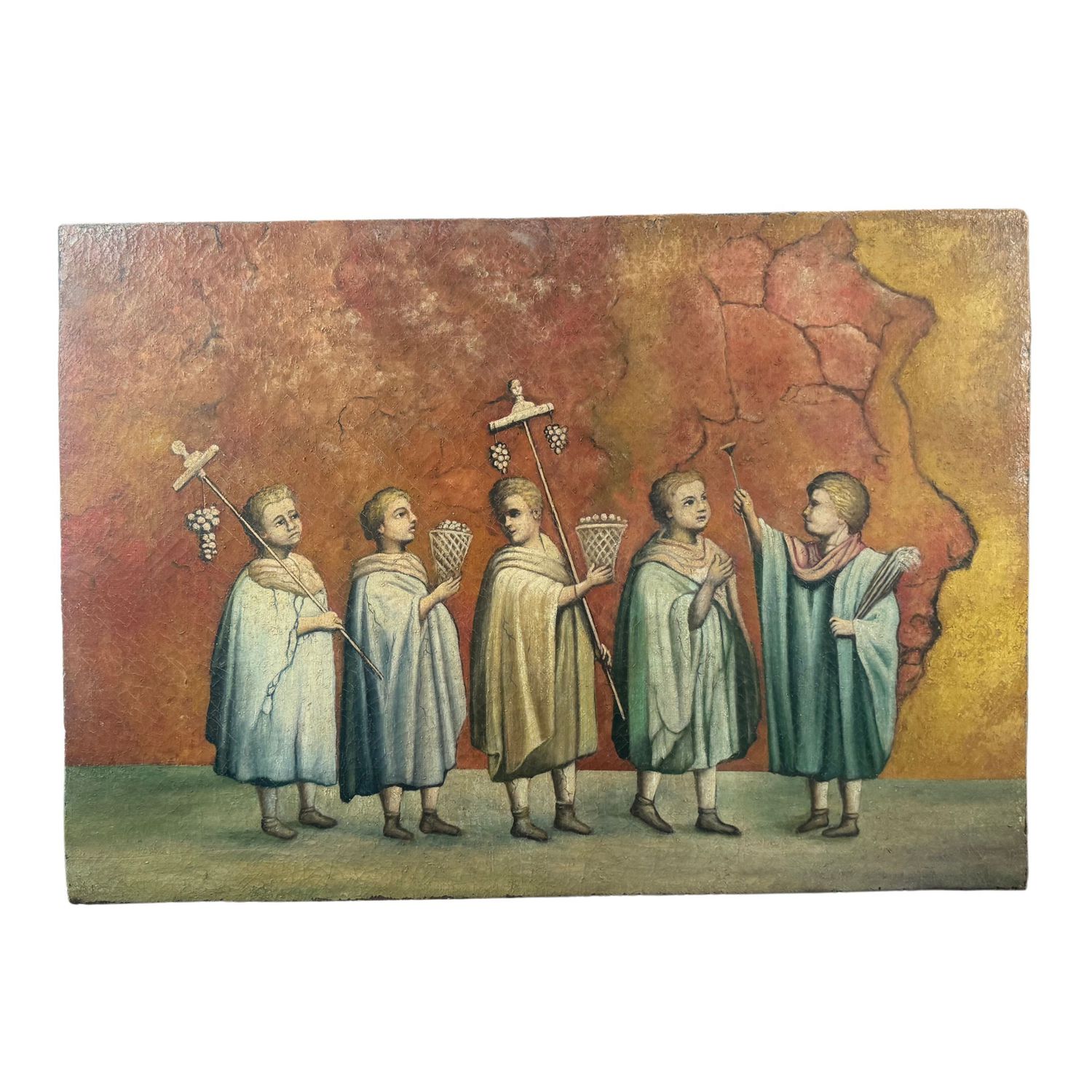 Dipinto olio su tela, periodo XIX/XX secolo scuola Italiana raffigurante Affresco Pompeano.