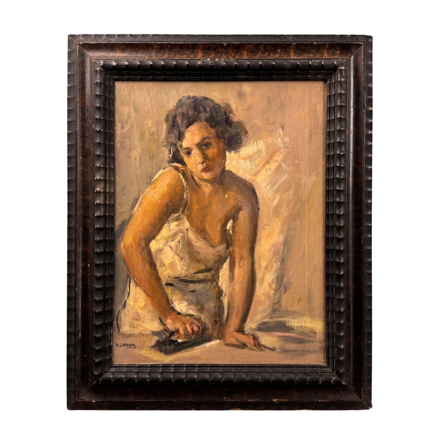 Dipinto olio su tavola, periodo XIX/XX secolo scuola Italiana, raffigurante La stiratrice.