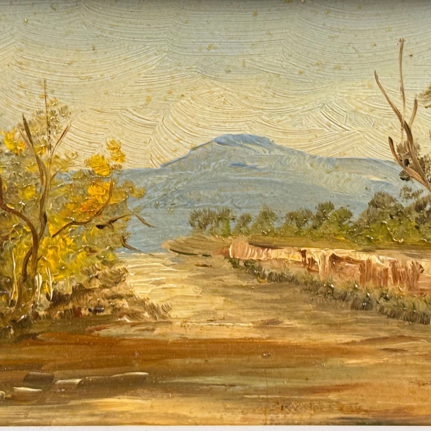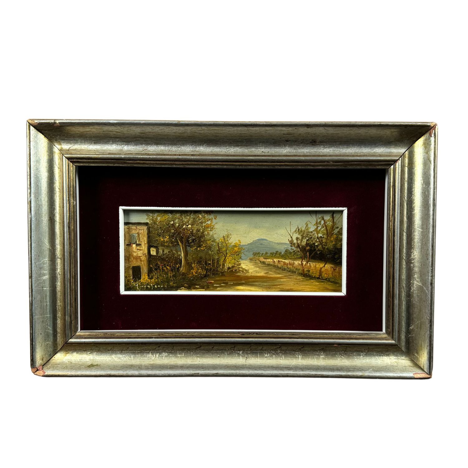 Dipinto olio su pannello, periodo XX secolo scuola Italiana, raffigurante Paesaggio a partenopeo.