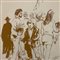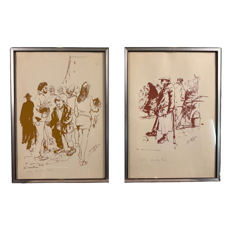 Coppia di opere tecnica mista su carta, periodo XX secolo scuola Italiana, raffiguranti Personaggi.