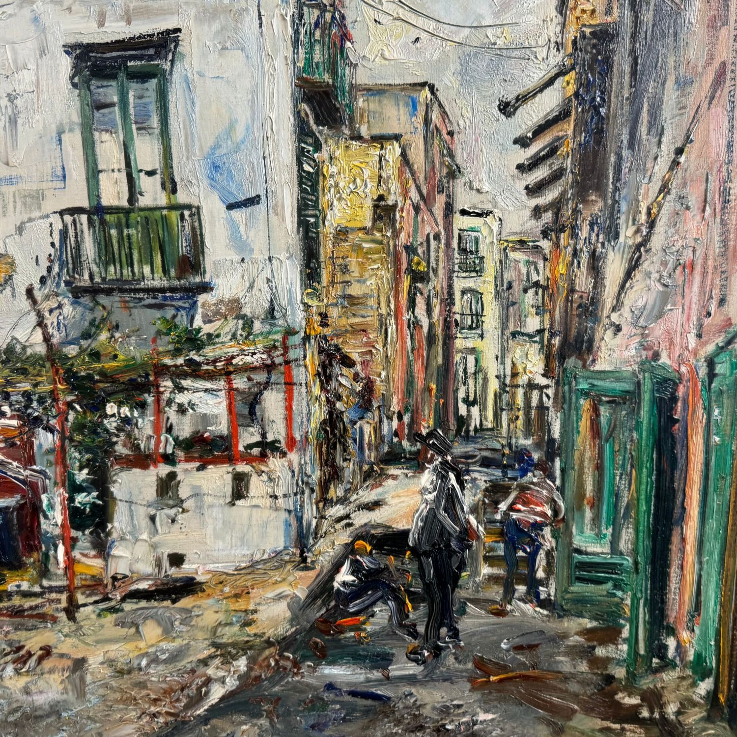Dipinto olio su tela, periodo XX secolo scuola Italiana, raffigurante Strada a Torre del Greco.