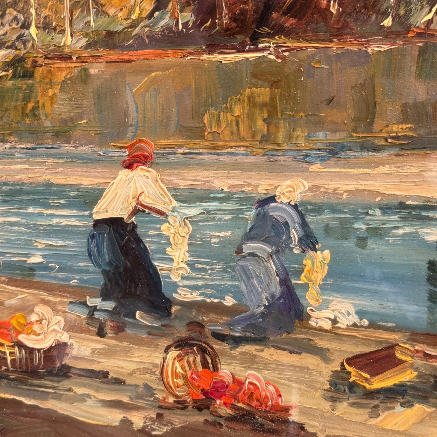 Dipinto olio su tavola periodo XX secolo scuola Italiana, raffigurante Le lavandaie.