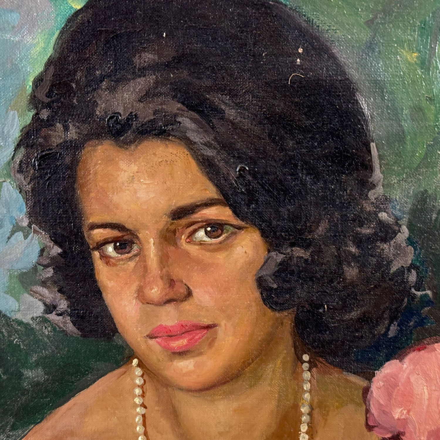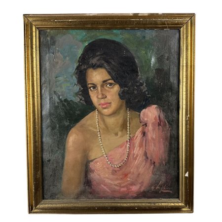 Dipinto olio su tela, periodo XX secolo scuola italiana, raffigurante Ritratto di donna. Dimensioni interno cornice: 45x55 cm. Dimensioni compreso cornice: 54x64 cm. Reca firma in basso a destra di difficile lettura. Opera in buone condizioni con lievi segni di vissuto come da foto allegate.