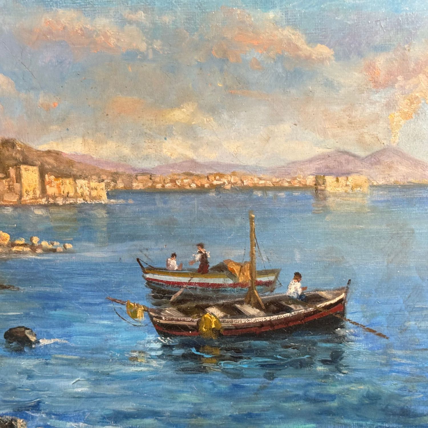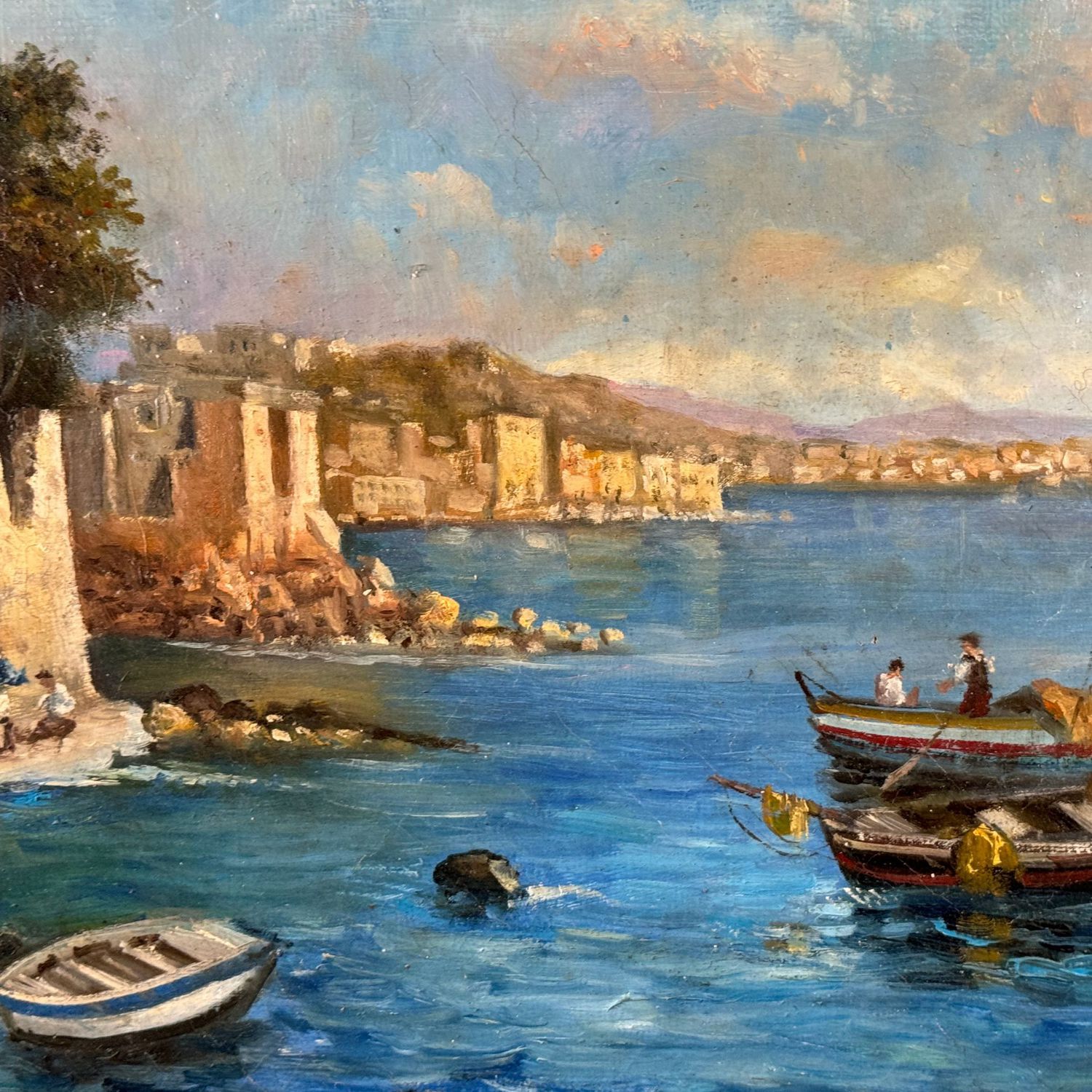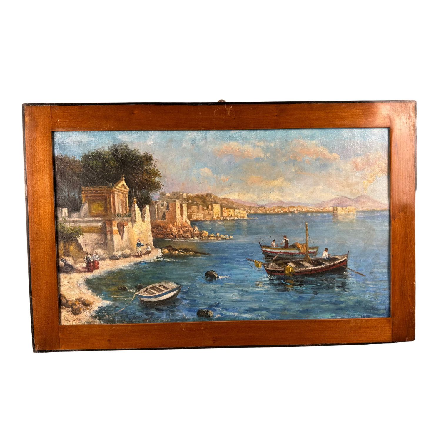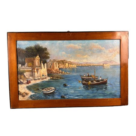 Dipinto olio su tela, periodo XX secolo scuola Italiana, raffigurante Scorcio di marina napoletana. Dimensioni interno cornice: 62x36 cm. Dimensioni compreso cornice:71x45 cm. Da artista anonimo. Opera in buone condizioni.